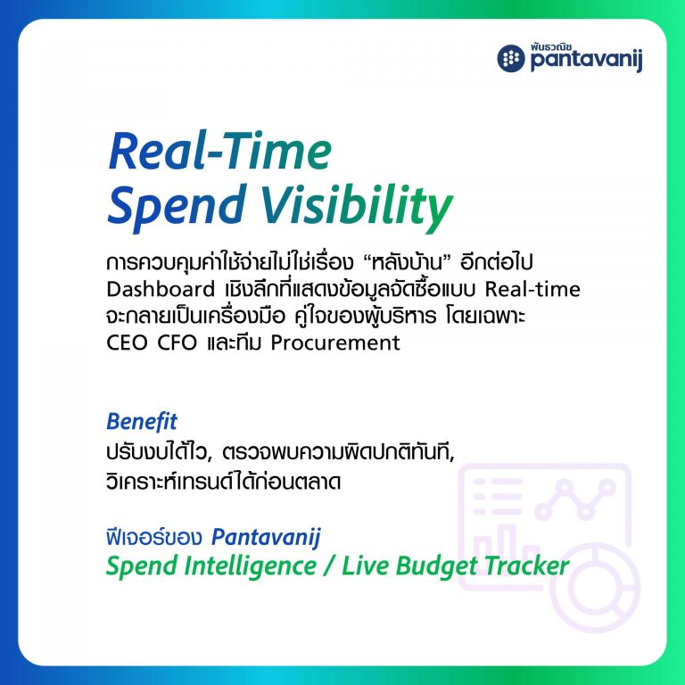 การควบคุมค่าใช้จ่ายไม่ใช่เรื่อง “หลังบ้าน” อีกต่อไป Dashboard เชิงลึกที่แสดงข้อมูลจัดซื้อแบบ real-time จะกลายเป็นเครื่องมือ คู่ใจของผู้บริหาร โดยเฉพาะ CEO CFO และทีม Procurement