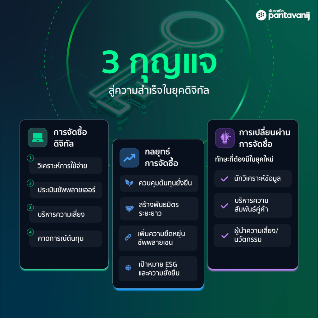 การผสาน Digital Procurement, Procurement Strategy และ Procurement Transformation อย่างเป็นระบบ จะช่วยให้องค์กรสามารถเติบโตได้อย่างมั่นคง โปร่งใส และยั่งยืนในระยะยาว