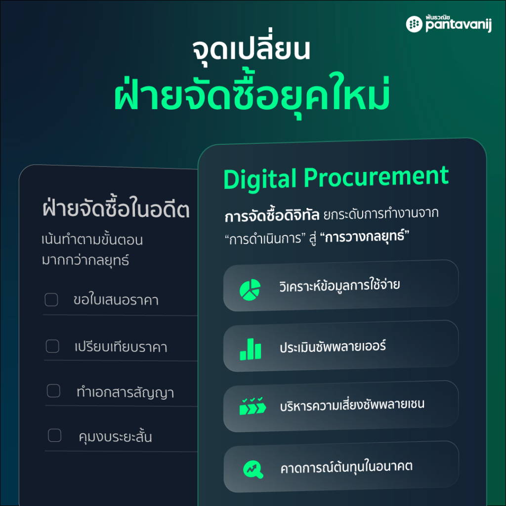 ข้อมูลเหล่านี้กลายเป็นรากฐานสำคัญของ Procurement Transformation ที่ช่วยให้ฝ่ายจัดซื้อมีบทบาทเชิงรุกมากขึ้น
